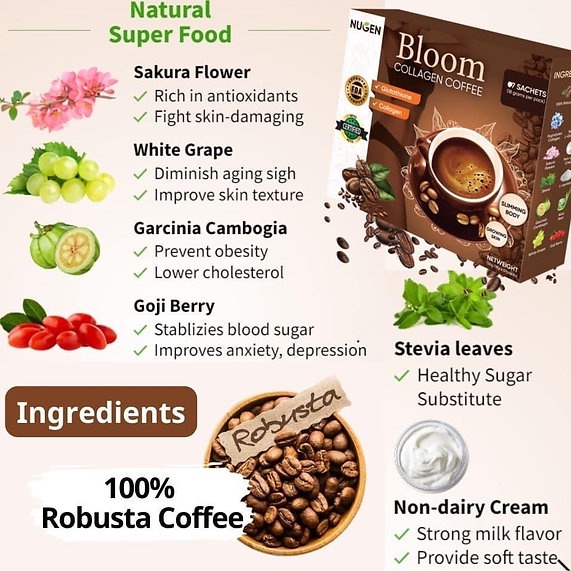 ☕ NUGEN Bloom Collagen Coffee Original – قهوة الكولاجين للتنحيف وتفتيح البشرة