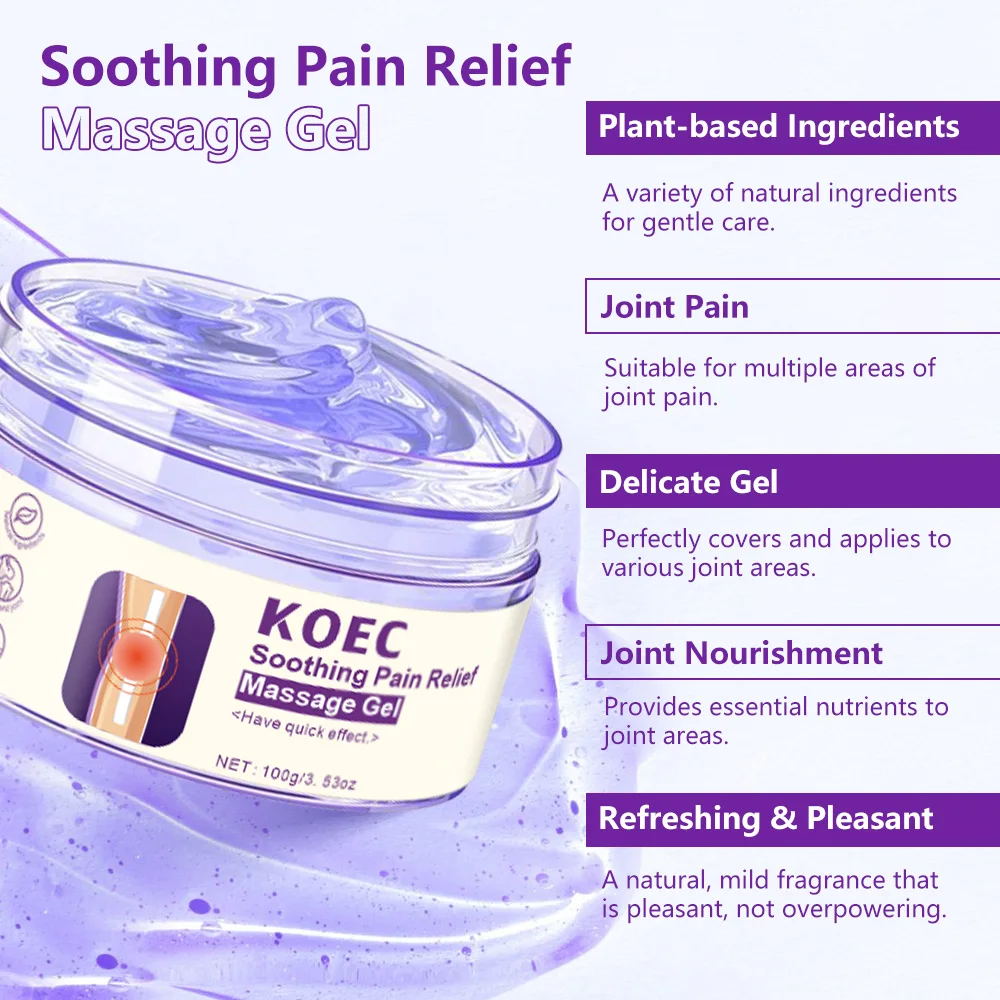 جل المساج لتخفيف الألم بتركيبة طبيعية فعّالة مصممة لدعم العضلات والمفاصل يوميًا 💜. يحتوي الجل على مزيج قوي من الأرنيكا، المنثول، خلاصة الكركم، وحمض الهيالورونيك ليساعد على تهدئة الألم، تقليل الشعور بالإجهاد، ومنح إحساس بالانتعاش والراحة دون تهيّج.